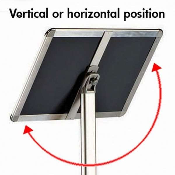 - Der Ständer ist mit einem Klapprahmen in A4- oder A3-Größe ausgestattet
